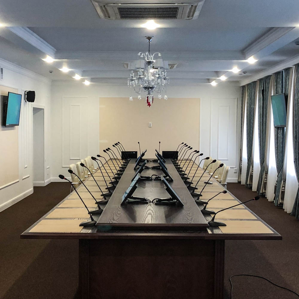Был произведён демонтаж имевшегося оборудования, осуществлена установка: конференц-системы с функцией электронного голосования.