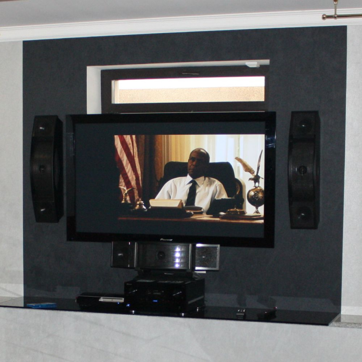 Тыловые каналы воспроизводят настенные акустические системы Fresco. Они построены без применения электростатических излучателей - на динамических вуферах и ленточном твиттере, которые помещены в необычно тонкий (15 см) корпус, благодаря чему они практически сливаются со стеной и смотрятся как естественная деталь интерьера.