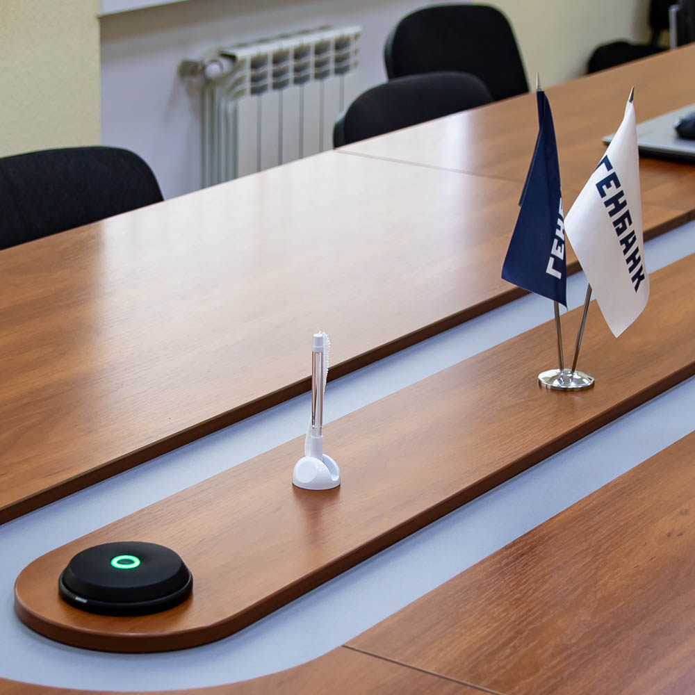 В конференц-зале головного офиса АО «ГЕНБАНК» в Симферополе не удавалось справиться с эффектом «эха» при применении программного клиента Trueconf. Проблема усугублялась тем, что в зале установлены не обычные микрофоны на «гусиной шее», которые, как правило, отключаются сразу после выступления, а микрофоны граничного слоя, которые кроме повышенной чувствительности постоянно включены. Таким образом, голос выступающего улавливался в основном одним-двумя микрофонами, а голос удалённых участников — всеми микрофонами сразу, и алгоритм эхоподавления не справлялся с этой ситуацией.