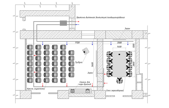 - Разработка дизайна интерьера, который должен соответствовать задаче проведения конференций на самом высоком уровне.