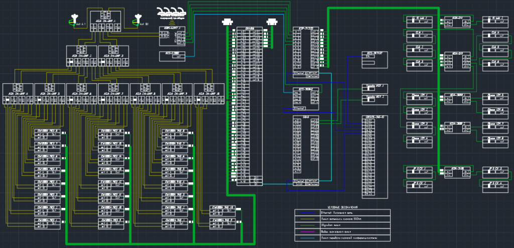 - Расчёт количества оборудования и длины соединительных кабелей.